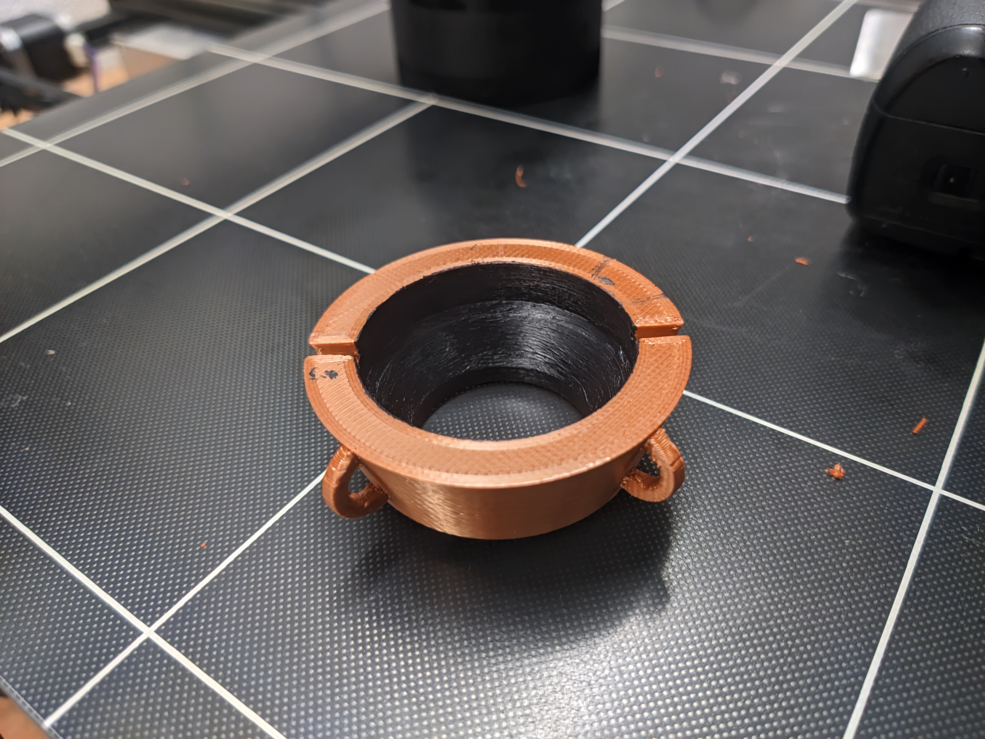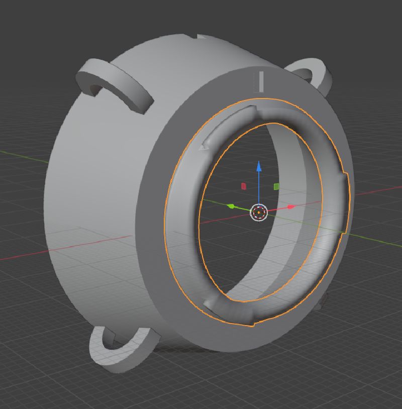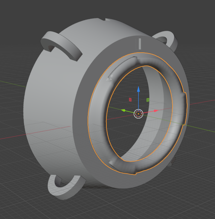Modeling an adapter wasn’t super hard. It’s mostly a tapered cylinder with an MFT mount bit on one end, a few holes cut out for sticky outy bits of the lens, and … lugs.