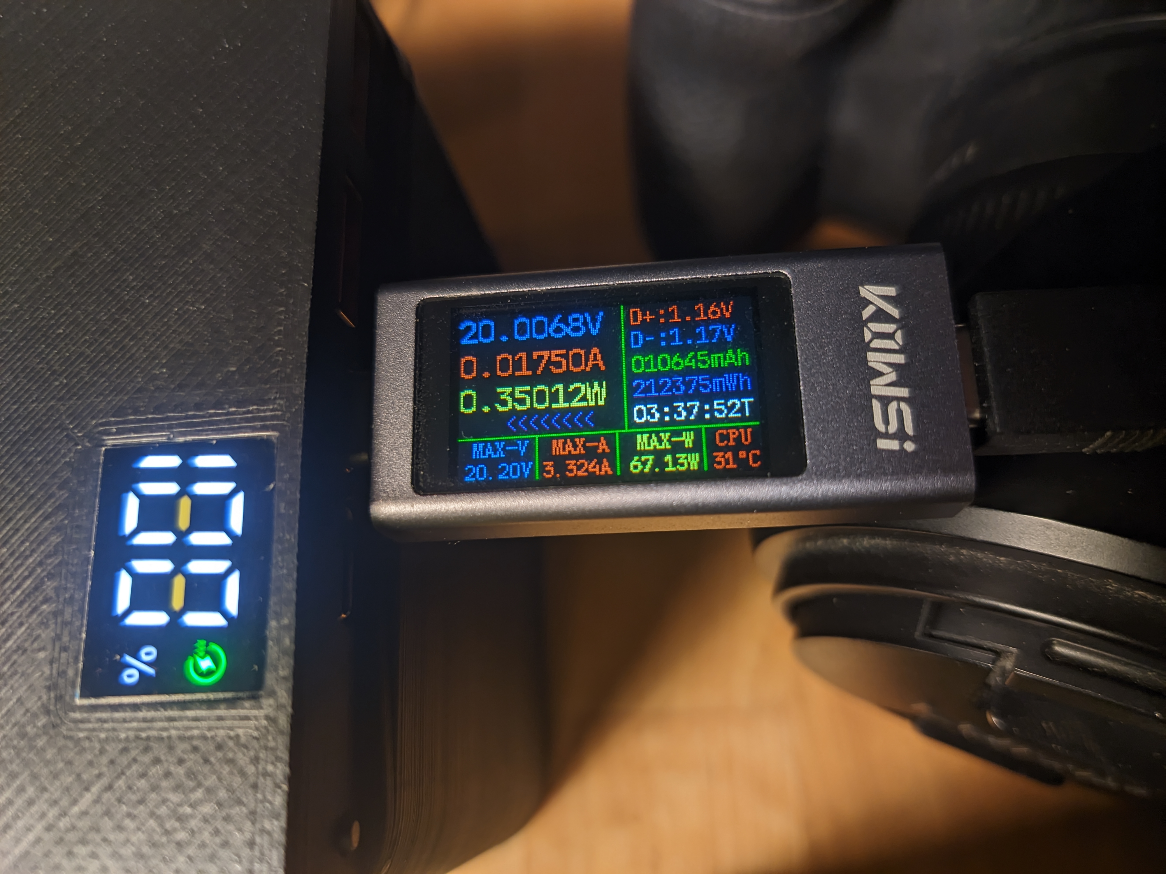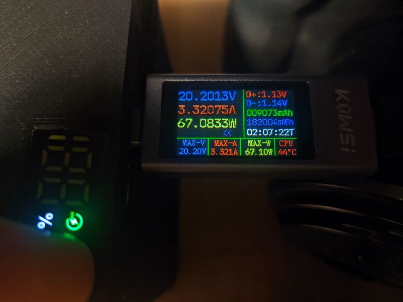 One thing to note: It doesn’t actually manage 100W all the way down to 0%. At around 30~20% it starts cutting out if you try drawing a full 100W, and only stays stable below ~70W.