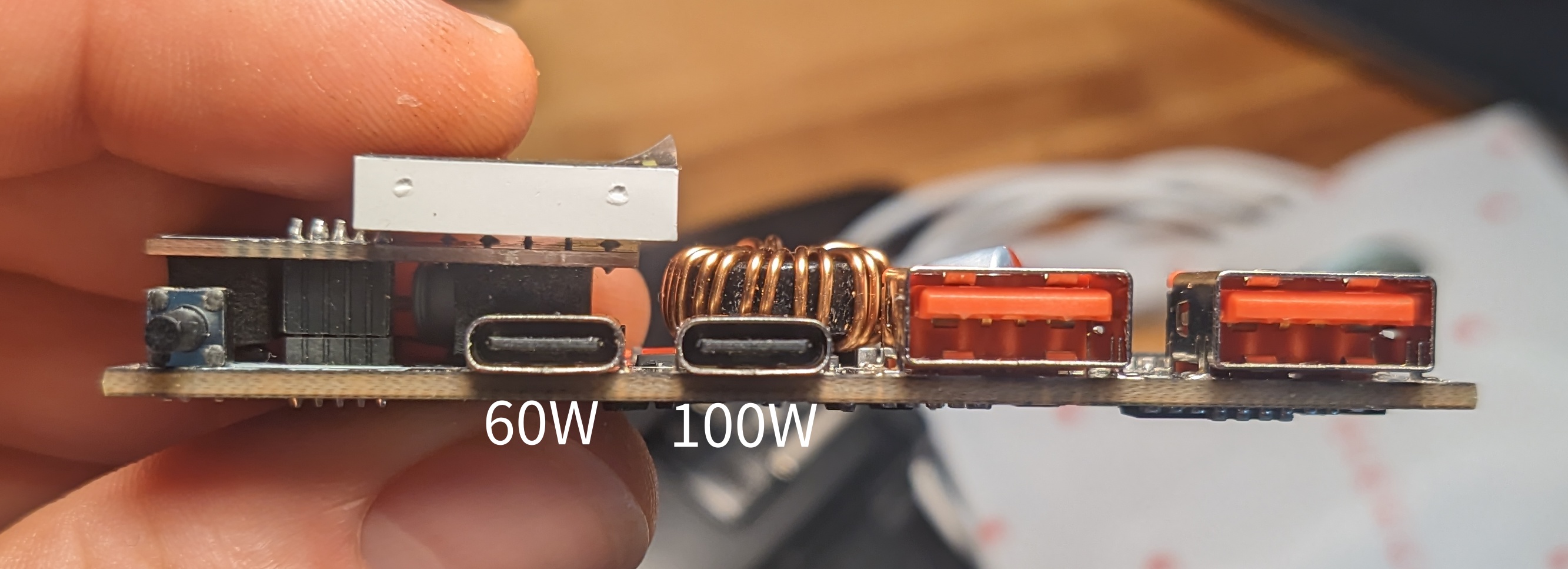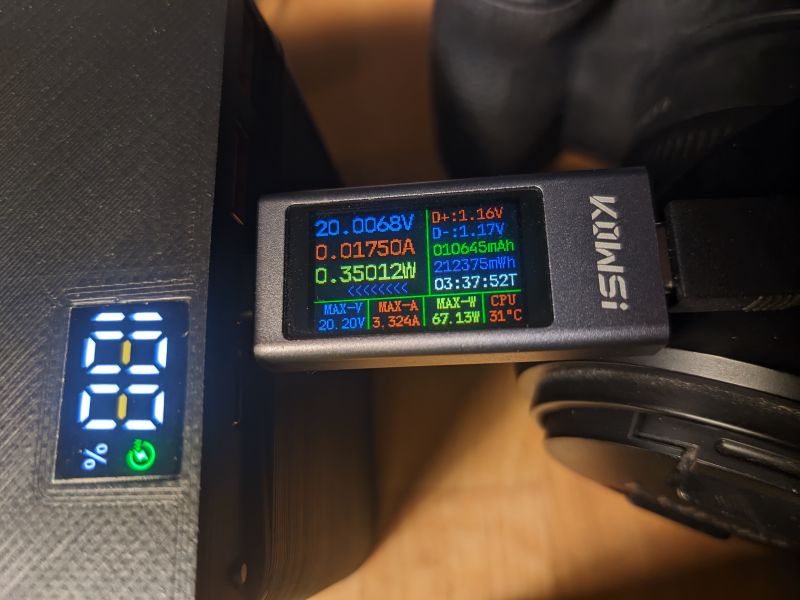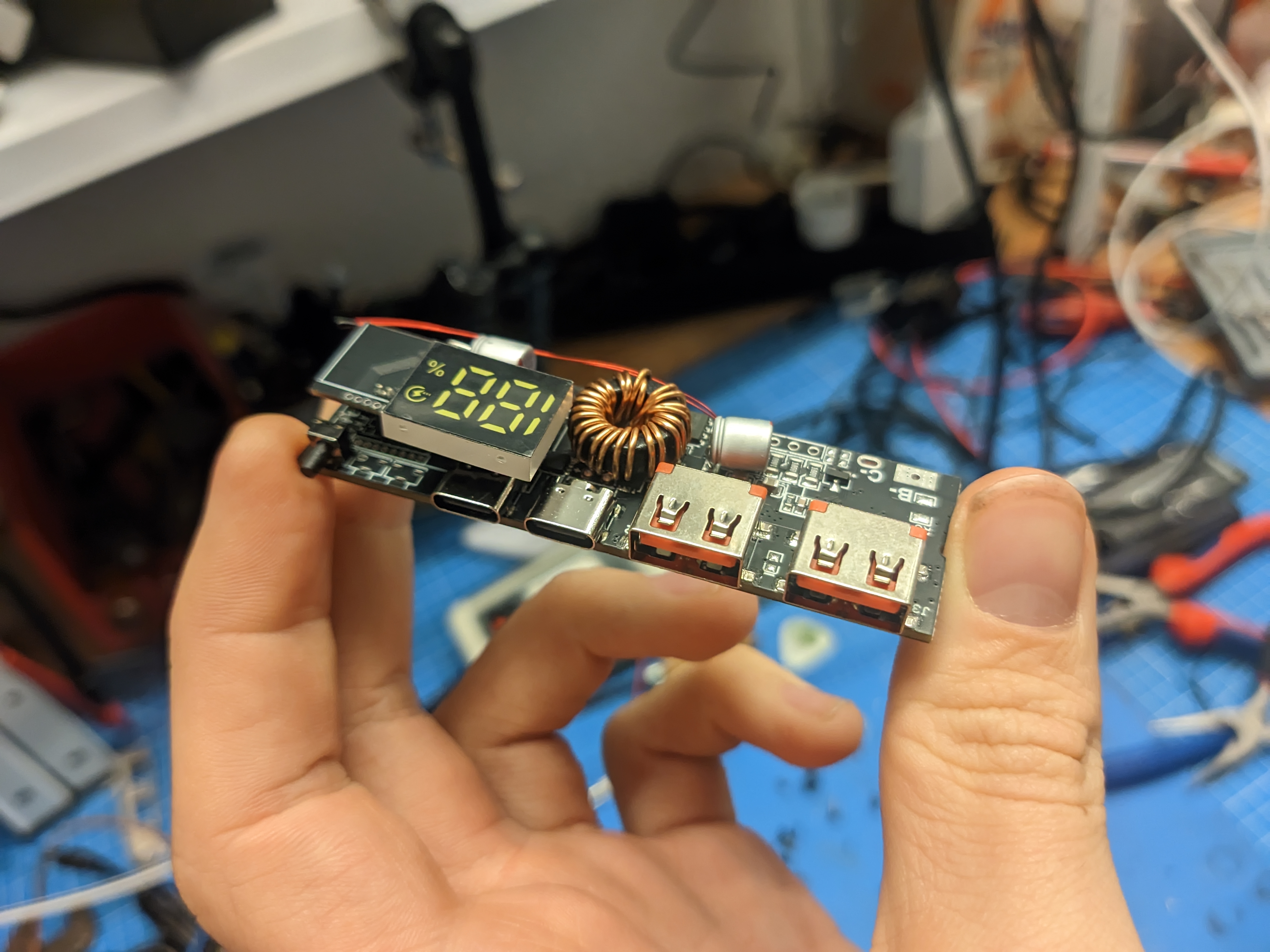 I built a ~200Wh, 100W USB-C PD power bank from 18650 cells I had lying around, and a cheap PCB from AliExpress.