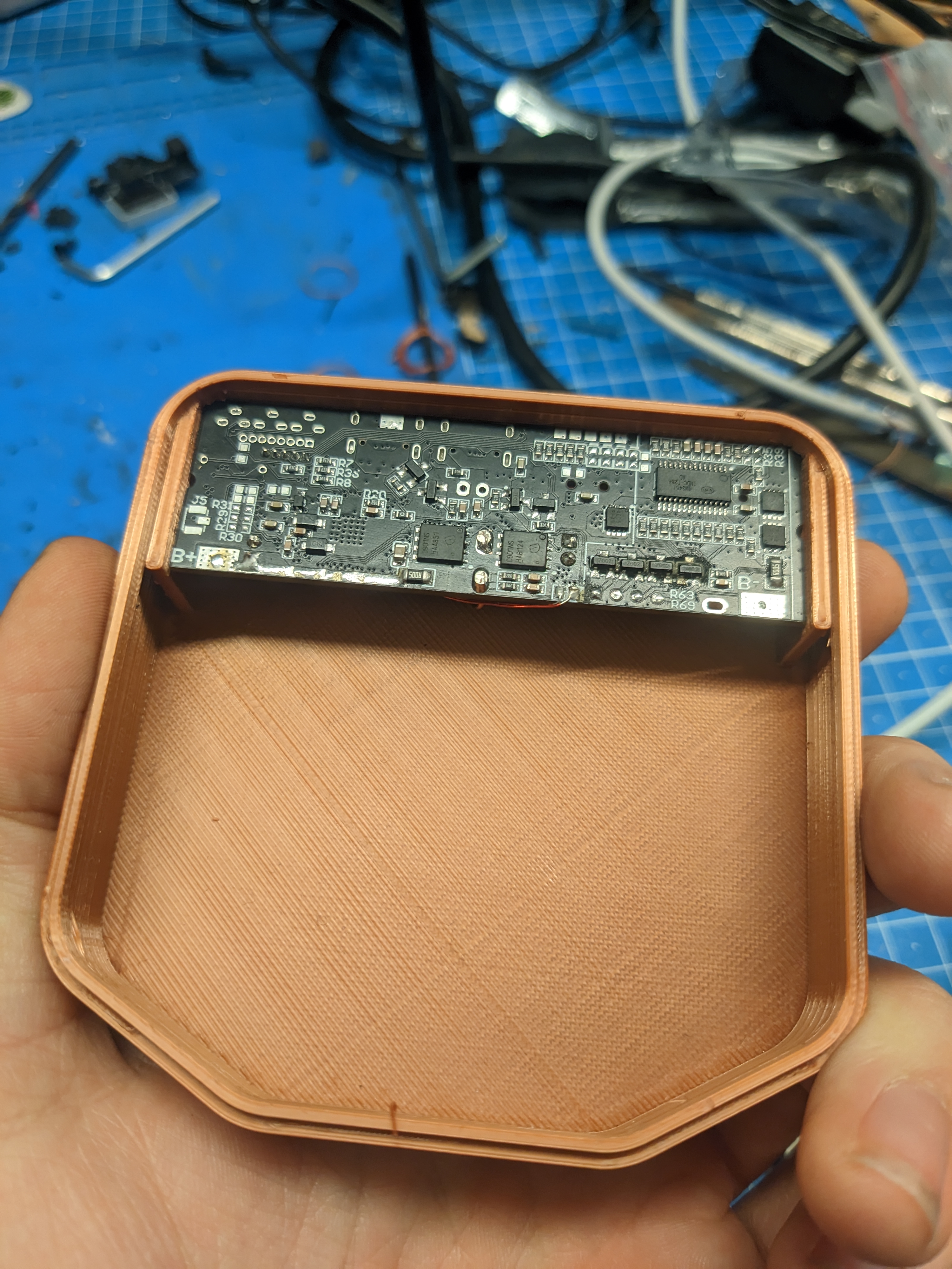 I couldn’t figure out a good way to mount the PCB (no mounting holes or anything), so I went for a kind of friction fit.