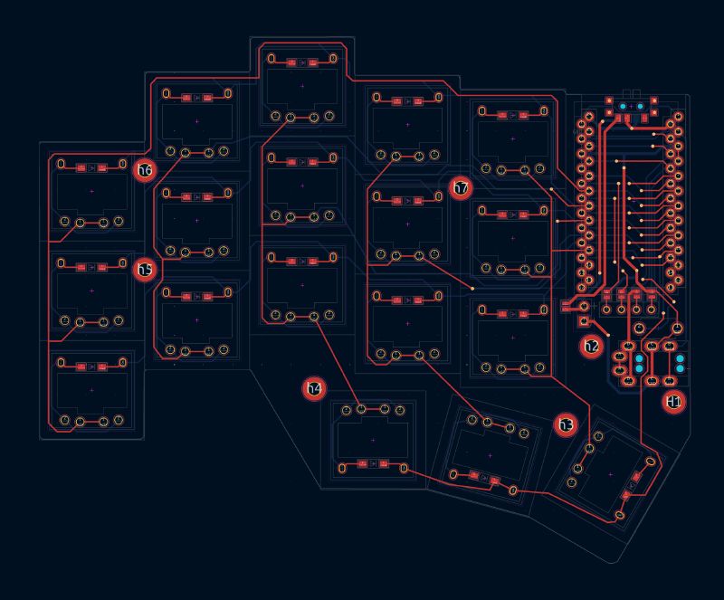 But then, thanks to the different pin placement and the giant holes necessary for the switch body, all of the switch matrix had to be rerouted.