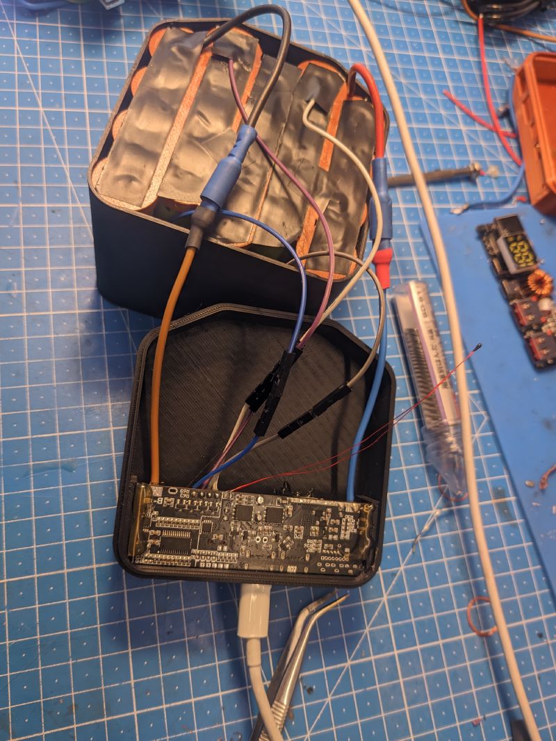 I built a ~200Wh, 100W USB-C PD power bank from 18650 cells I had lying around, and a cheap PCB from AliExpress.